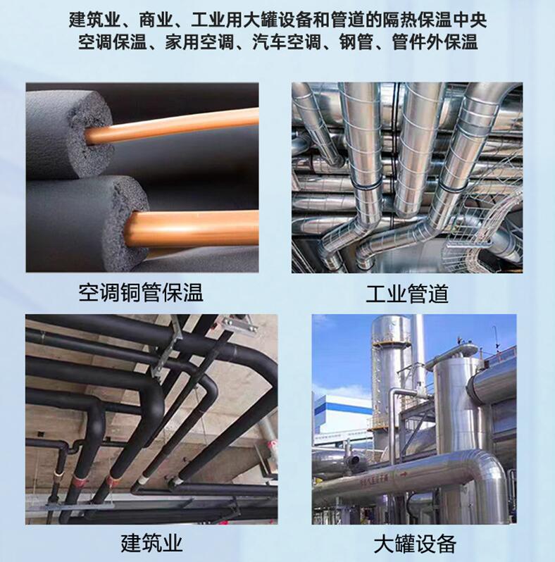 因此是一種高橡塑保溫管,它具有柔軟、耐屈繞、耐寒、耐熱、防水、導熱系數低,減震、吸音等優良功能。可廣泛的用于中央空調、建筑、化工、醫藥、輕紡、船舶、車輛等行業和部門的各類冷熱介質管道、容器,能到降低冷損和熱損的效果,它施工方便,外光整潔美觀,沒有污染,品質的跨世紀的新一代絕熱保溫材料。由于本材料的柔軟、耐屈繞等特點,可加工制成健身器材、。醫療器械。日用品的把套,護套等。而它的表面系數高,因此在相同的外界條件下,使用本產品厚度比其他的保溫材料博一半以上能達到相同的保溫效果,從而節省了樓層吊頂以上的空間,節省投資。